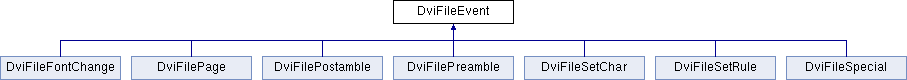 All the features of a DVI file which calling code might be interested in are represented by one of the subclasses of this, and these are obtained in order by calling the DviFile#getEvent method on DviFile.